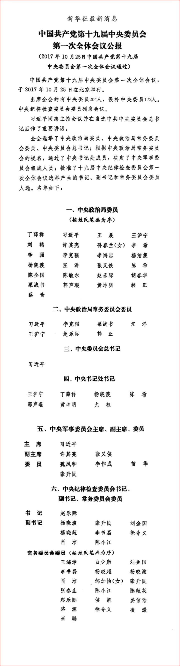 黨的新一屆中央領(lǐng)導(dǎo)機構(gòu)誕生