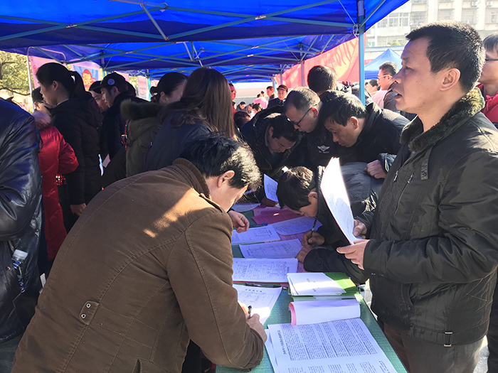 圖為應(yīng)聘人員在填寫求職登記表。