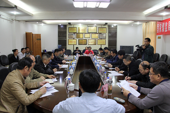 圖為檢查組一行在聽取匯報(bào)。