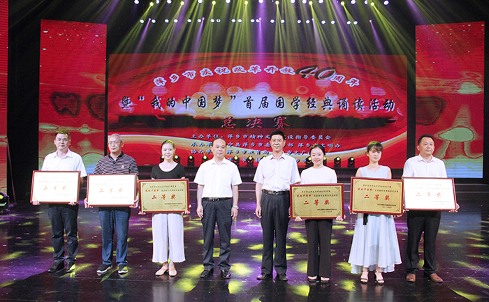 9月14日晚19時30分,一場極具思想性、藝術(shù)性、教育性和觀賞性的視聽盛宴——萍鄉(xiāng)市慶祝改革開放40周年暨“我的中國夢”首屆國學(xué)經(jīng)典誦讀總決賽在安源大劇院拉開帷幕。萍礦集團選送的音詩畫《滿江紅》憑借出色表演喜獲社會團體及大中專院校組二等獎。 此次國學(xué)經(jīng)典誦讀活動由萍鄉(xiāng)市文明委主辦,萍鄉(xiāng)市委宣傳部、市文明辦承辦,分社會團體及大中專院校組、中小學(xué)組兩個組別進行比賽。經(jīng)過初賽和復(fù)審等層層選拔,共有35支參賽隊伍亮相總決賽舞臺。當(dāng)晚進行的是社會團體及大中專院校組總決賽,中小學(xué)組總決賽于今天上午舉行。 舞臺上,一篇篇國學(xué)經(jīng)典,一封封紅色家書,一個個改革巨變,選手們或誦讀、或吟唱,時而慷慨激昂,時而低沉婉轉(zhuǎn),聲情并茂、全情投入的精彩演出,加上強大的陣容、精心的編排,讓現(xiàn)場觀眾在感受中華傳統(tǒng)文化的博大精深、改革開放40年來巨大變化的同時,心靈再一次受到強震、得到洗禮。萍礦集團選送的選手用高亢雄渾的朗誦和深沉動人的吟唱,將一曲《滿江紅》演繹得蕩氣回腸、扣人心弦,獲得評委的高度好評和觀眾的熱烈掌聲。“有氣勢!”“很專業(yè)!”“很震撼!”不少觀眾看后由衷贊嘆。