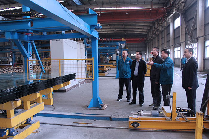 圖為周犇(左三)在浮法玻璃廠實(shí)地調(diào)研。