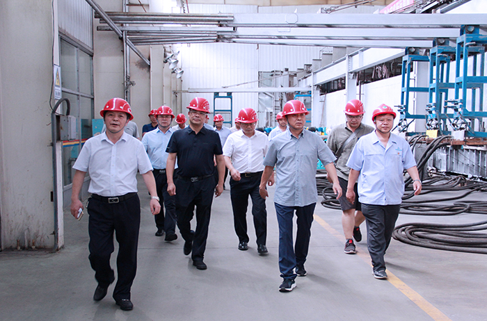 楊雪崗(前排右二)一行到浮法玻璃廠考察調(diào)研!z影 周建生