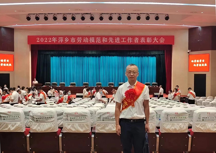9月6日上午,2022年萍鄉(xiāng)市勞動模范和先進工作者表彰大會召開。會上,浮法玻璃廠職工肖雨被授予2022年“萍鄉(xiāng)市勞動模范”榮譽稱號。這是萍鄉(xiāng)市授予勞動者的最高榮譽,每五年評選一次。肖雨接受表彰回來,浮法玻璃廠隨即舉行了簡短的歡迎儀式。萍礦集團黨委副書記、工會主席徐松明出席。