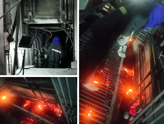 磚材找到了,但是操作空間小、溫度高,怎么辦?熱補(bǔ)當(dāng)日,在臨時(shí)采取壓火風(fēng)機(jī)壓火的輔助下,他們首先做好臨時(shí)吊磚裝置,并用鋼夾吊好磚,磚重60斤,戴上鋼夾后重達(dá)150斤。然后林萍、陳勇新帶領(lǐng)2名保窯工身著專業(yè)防火服,來(lái)到熔洞上方進(jìn)行熱補(bǔ)。站在熔洞口,雖然是專業(yè)人員,但直射出來(lái)的火焰一點(diǎn)也“不留情面”,他們即刻就全身汗?jié),整個(gè)人就像在“煉丹爐”里炙烤,堅(jiān)持不了10分鐘就得換人。為爭(zhēng)取時(shí)間,他們動(dòng)作麻利、行動(dòng)迅速,待殘磚處理干凈,迅速通過(guò)簡(jiǎn)易吊裝裝置將替補(bǔ)磚材輸送到精準(zhǔn)部位對(duì)接,再用熱補(bǔ)料進(jìn)行密封。整個(gè)操作順暢連貫、一氣呵成,一天內(nèi)就熱補(bǔ)到位,也沒(méi)影響產(chǎn)質(zhì)量!暗浆F(xiàn)在為止,熱補(bǔ)已經(jīng)7個(gè)月了,效果非常好,未發(fā)生透火現(xiàn)象,而且節(jié)約了不少資金!绷制几嬖V記者。該項(xiàng)目也在萍礦集團(tuán)2022年度“五小”活動(dòng)中獲得一等獎(jiǎng)。