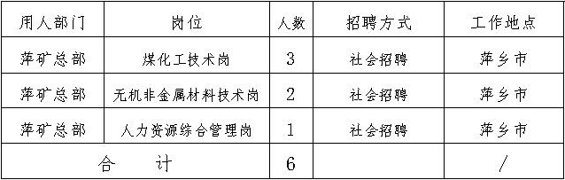 招聘崗位所需的具體條件詳見《萍礦集團公司公開招聘崗位信息匯總表》(見附件)。