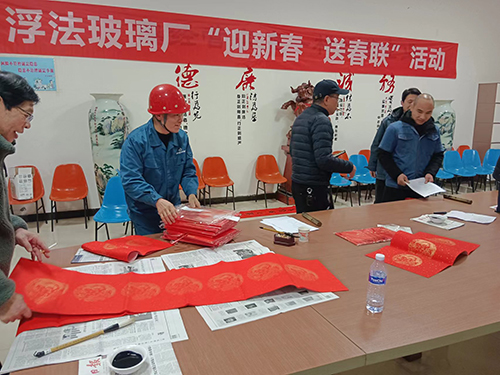 玉兔歡歌辭舊歲,金龍騰躍慶新春。隨著春節(jié)腳步臨近,新春年味漸濃,2月2日,浮法玻璃廠開展“迎新春 送春聯(lián)”活動(dòng),為廣大職工送去美好祝福,也送上濃濃年味。