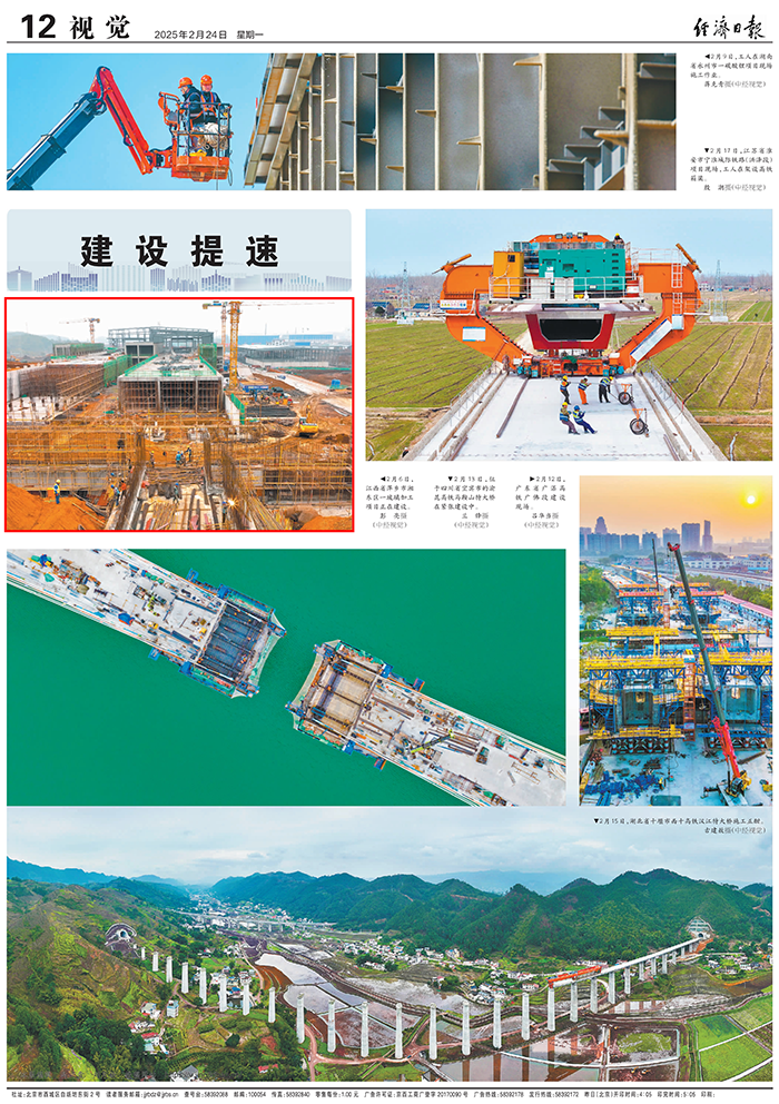 2月24日,《經(jīng)濟日報》以整版圖片分別報道全國各地項目建設提速,其中展現(xiàn)了萍礦玻璃項目的火熱建設場景。