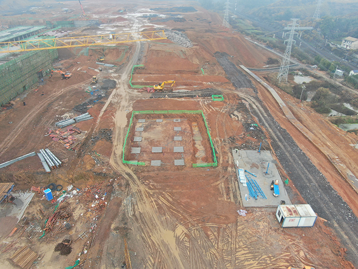 煙囪:基礎(chǔ)工程完成,主體工程完成25%。 成品工段:獨立基礎(chǔ)工程完成75%,擋土墻完成20%。 裝箱工段:獨立基礎(chǔ)工程完成25%。 均化庫:獨立基礎(chǔ)完成25%。
