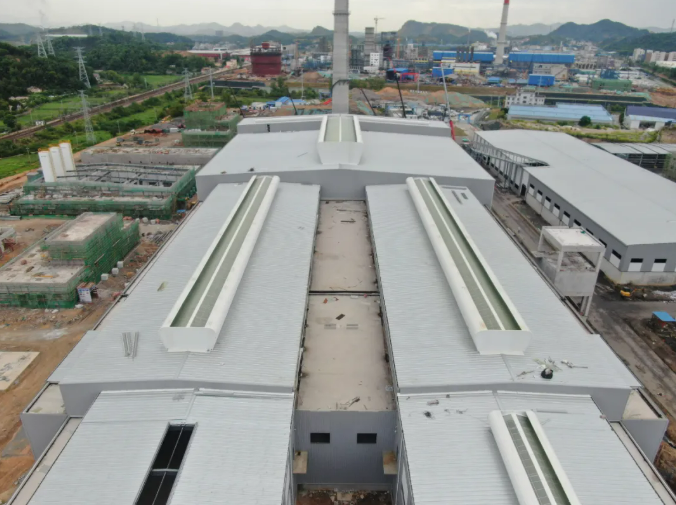 熔化工段:基礎(chǔ)、主體工程完成,鋼結(jié)構(gòu)安裝完成98%。(通風(fēng)器已完成88%)。