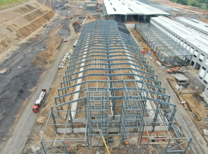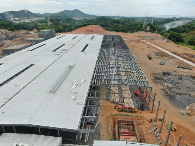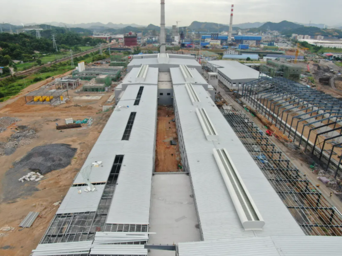 成型工段:700噸生產(chǎn)線車間鋼結(jié)構(gòu)完成98%,500噸生產(chǎn)線鋼結(jié)構(gòu)完成96%。