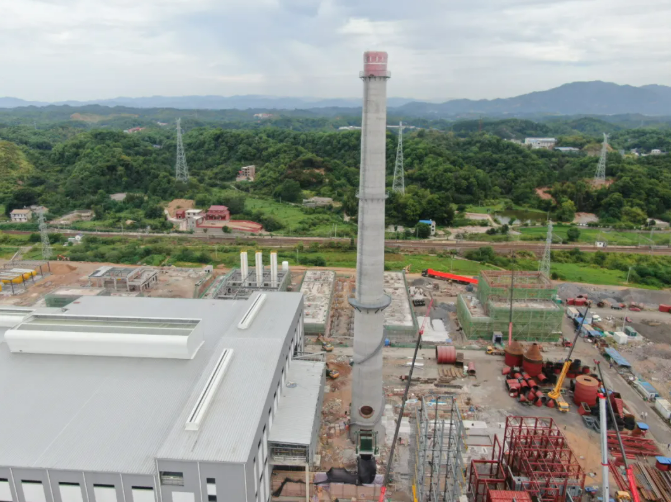 煙囪:基礎(chǔ)工程已完成,主體結(jié)構(gòu)已封頂,室外鋼爬梯完成,內(nèi)襯已完成,煙囪內(nèi)隔斷混凝土澆筑完成82%。