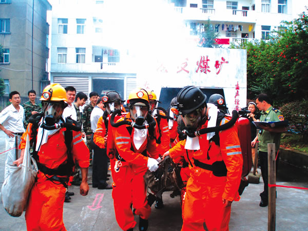 “宏發(fā)煤礦二區(qū)3012工作面發(fā)生火災,內(nèi)有人員,命令你們火速趕赴支援!痹诮拥秸{(diào)度室的命令后,萍礦救護隊員向總指揮報告,領(lǐng)命進入礦井內(nèi)部,將明火撲滅,并及時將受傷人員抬運出井急救……看到這個場面,您可千萬別太緊張,因為這不是真的火災,而是萍礦集團公司2010年應急演練中的一個模擬救援項目。